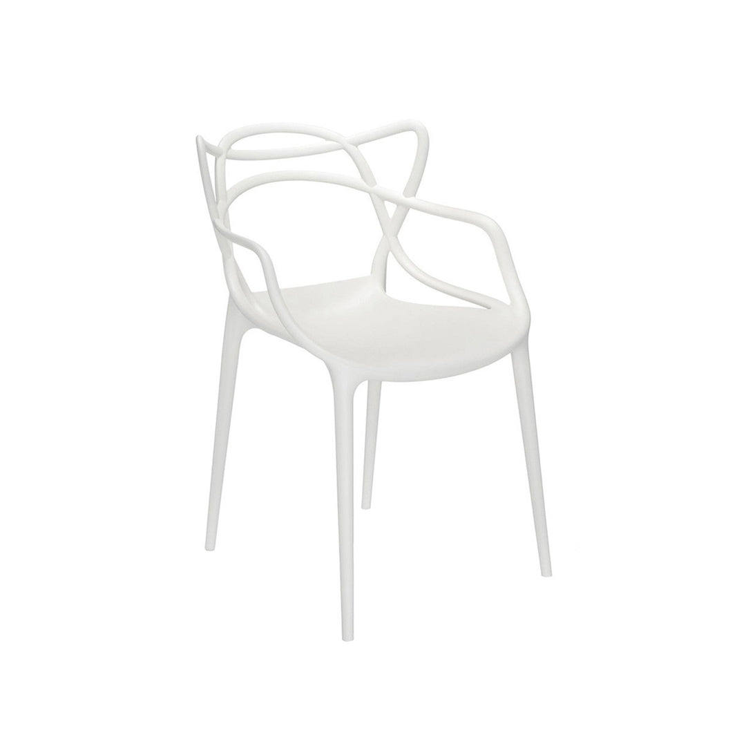 - PRODUCT DESCRIPTION: The Masters chair is a clear tribute to three symbol-chairs, reworked and reinterpreted by Starck’s creative genius. The unmistakable silhouettes of Arne Jacobsen’s “Serie 7”, Eero Saarinen’s “Tulip Armchair” and Charles Eames’ “Eiffel Chair” entwine in a sinuous hybrid, creating a fusion of original and attractive styles. Light, practical and stackable, Masters can also be used outdoors. Also available in metallic finishes which convey and extra special effect.