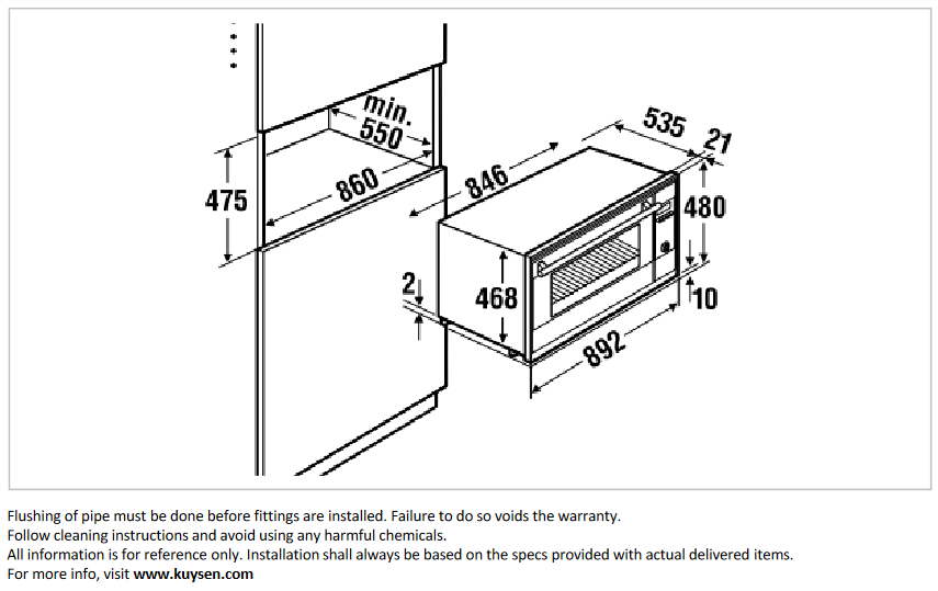 - DIMENSIONS: 860 x 475 x 550 mm