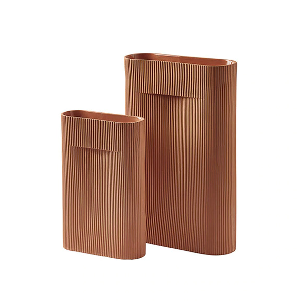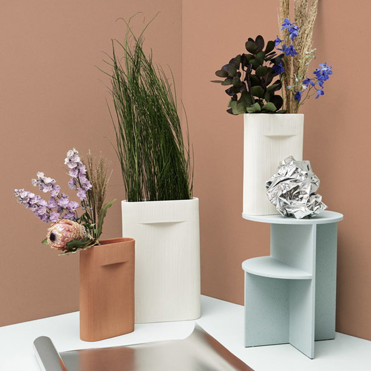 - CLEANING AND CARE: The Ridge Vase’s outer is untreated with a raw surface. When cleaning the Ridge Vase, we suggest that all usage of cleaning tools, such as a scrub sponge, that can get stuck in the rough surface is avoided. If the outer of your Ridge Vase needs additional cleaning, we recommend using an uncolored brush, such as a dish or nail brush, dipped in bit of warm water. Not dishwasher approved.