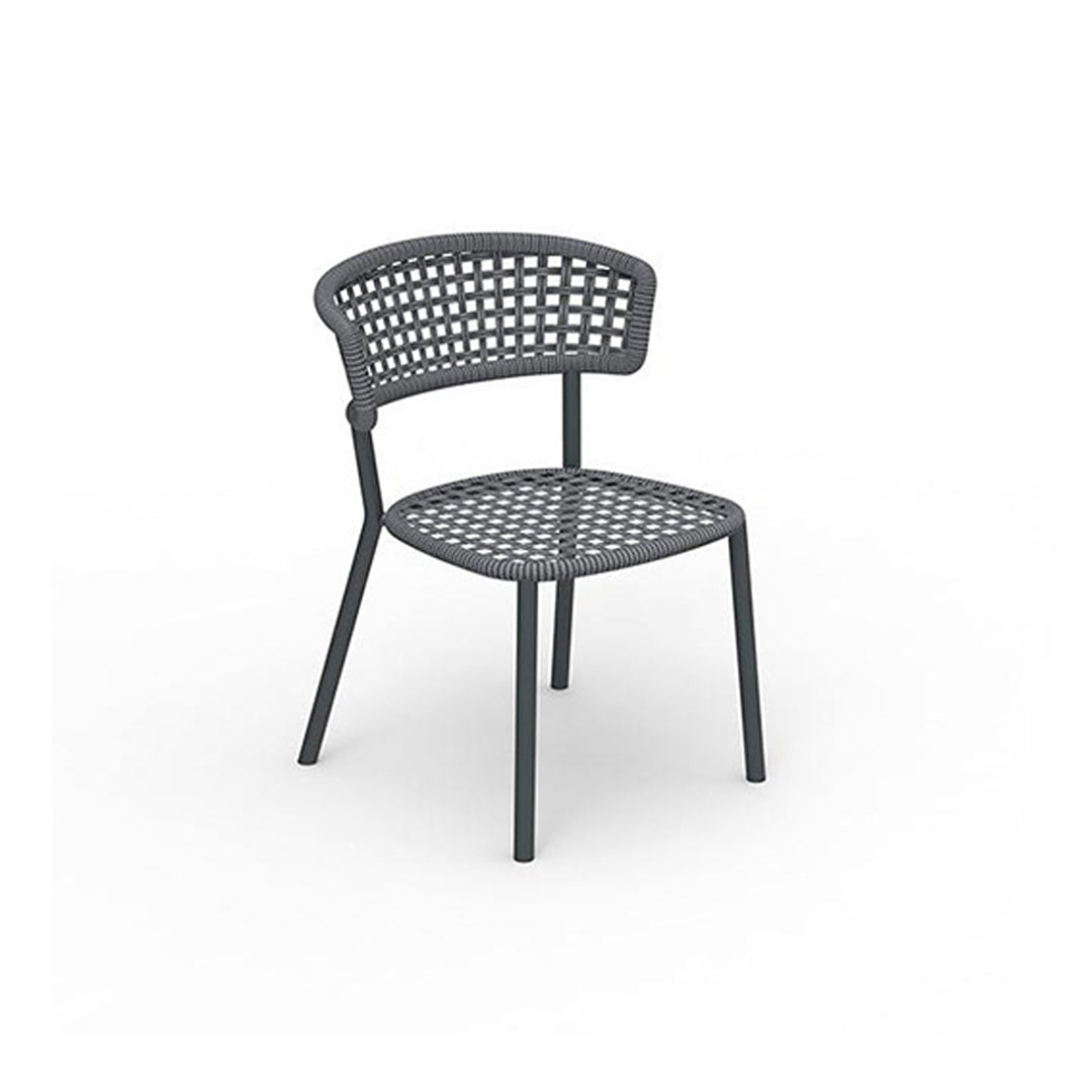 - PRODUCT DESCRIPTION: The Moon dining chair offers a wide and welcoming seat with a light ropes breading creating the seat and the backrest. Together with the dining table it creates a soft and elegant atmosphere. Structure in aluminium covered with a braiding of ropes in grey synthetic fabric.