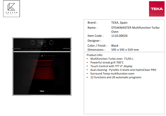 Teka Steakmaster Multifunction Pyrolitic oven 71/63 L. 1110.00026