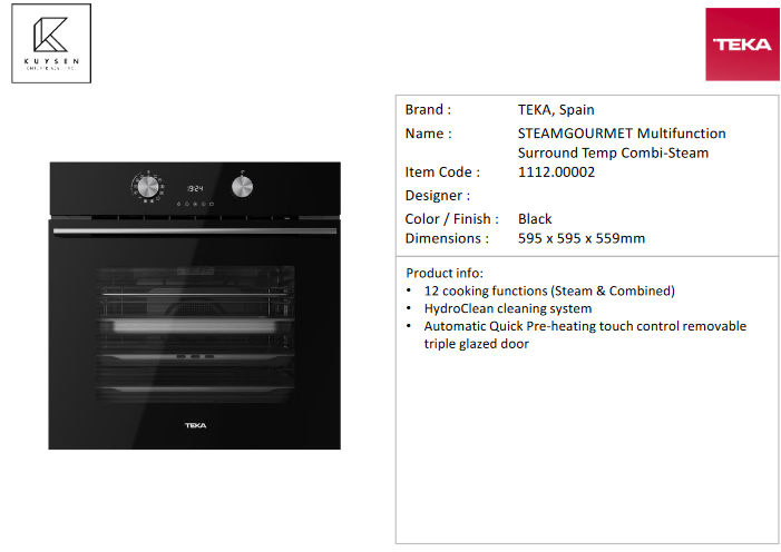 TEKA Steamgourmet Multifunction SurroundTemp Combi-Steam oven 70/71 L. 1112.00002
